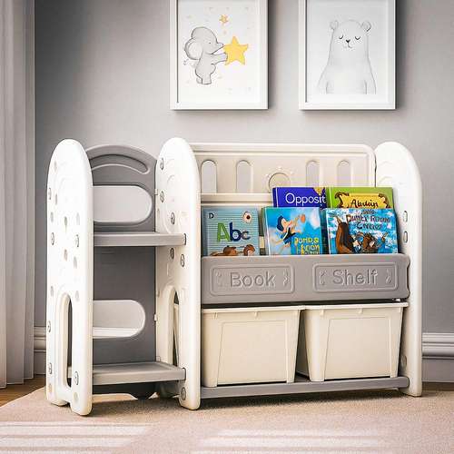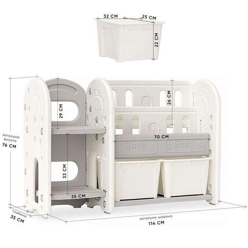 Стелаж для іграшок та книжок Kubik білий на ніжках з контейнерами