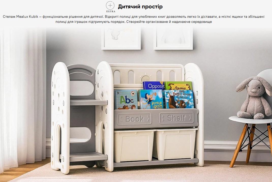 Стелаж для іграшок та книжок Kubik білий на ніжках з контейнерами купити за ціною 3 990 грн.