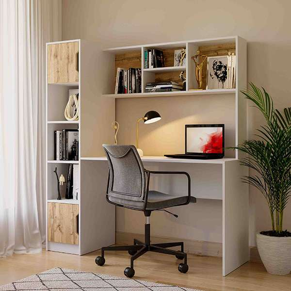 Представляємо вам письмовий стіл, ідеально підходить для кімнати школяра. Цей стіл оснащений пеналом на 5 полиць, що дозволяє зручно організувати зберігання шкільних речей та навчальних посібників. Крім того, над самим столом розташована полиця для книг, що дозволяє швидко доступатися до потрібних матеріалів під час навчання.Білий колір столу надає легкості меблям і додає універсальності в інтер'єрі кімнати. Використання плити ЛДСП класу «Е1» товщиною 16мм гарантує високу якість та надійність виробу. Кромка ПВХ товщиною 0,6мм забезпечує надійне облицювання та захист від пошкоджень.