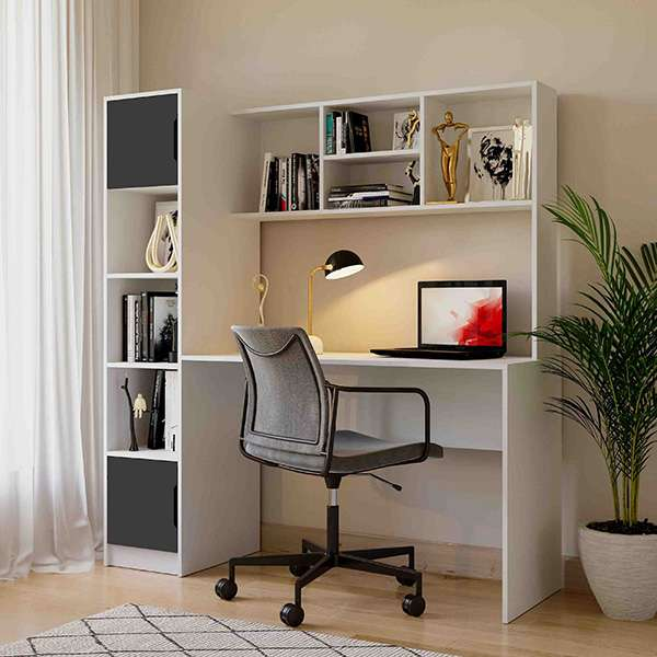 Стіл письмовий з пеналом білий корпус з чорним фасадом