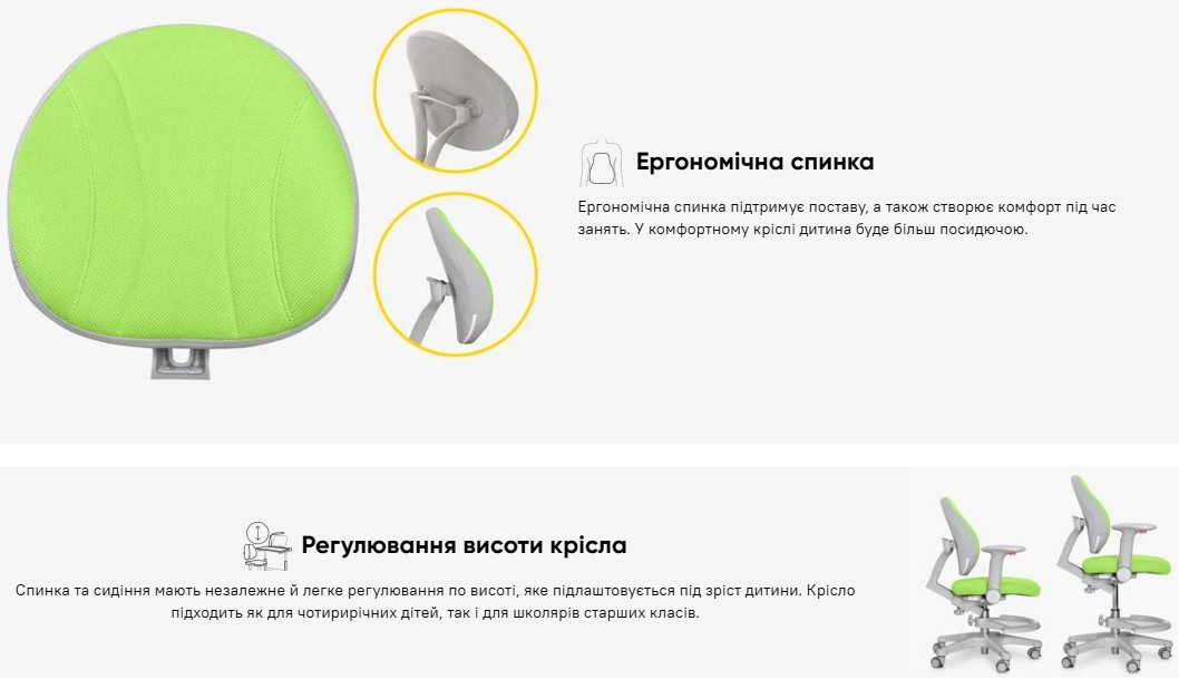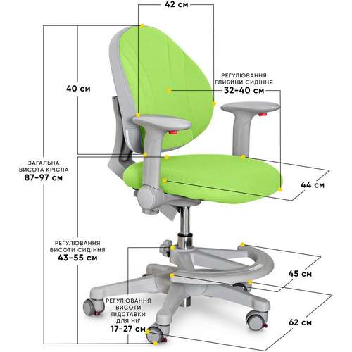 Дитяче крісло Evo-kids Mio колір зелений з підніжкою купити за ціною 6 190 грн.
