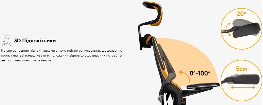 - Тип підлокітників - 3D (по висоті / поворот / вперед-назад)