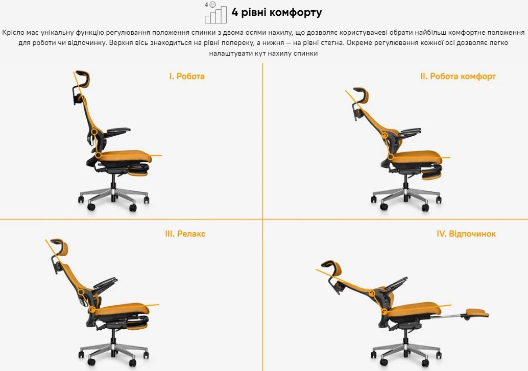 - Кількість фіксованих положень кута нахилу спинки - 4