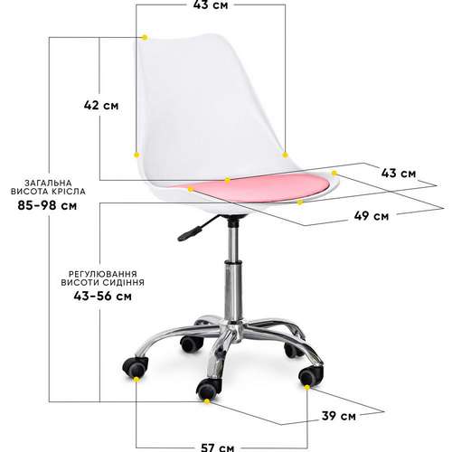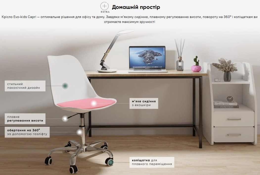 Дитяче крісло Capri White / Pink на колесах купити за ціною 1 810 грн.
