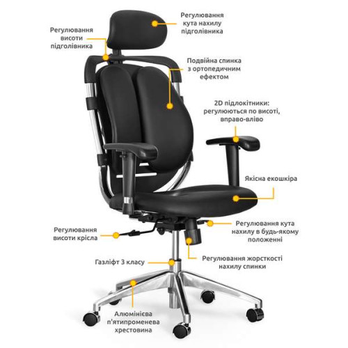 Офісне комп'ютерне крісло Mentor Duo з подвійною ортопедичною спинкою чорне купити за ціною 10 990 грн.