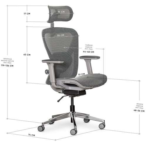 - Тип підлокітників - 3D (по висоті/поворот/вперед-назад)