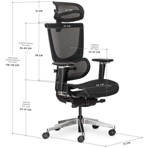 - Тип підлокітників - 5D (обертаються на 270 градусів/регулювання по висоті)