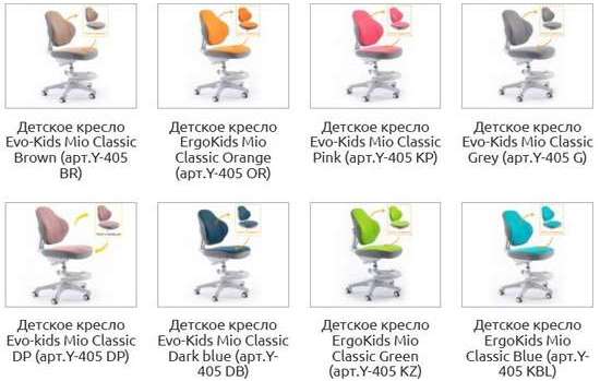 Можливі кольори крісла: