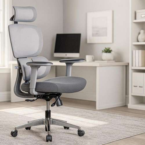 Регульоване офісне крісло D1 Duo Air Fabric Grey з підлокітниками і упором для попереку