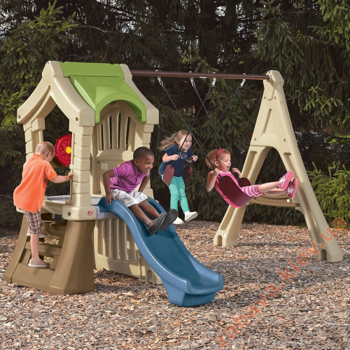 Будиночок на високій платформі, сходи, рульове колесо та гірка для легкого та швидкого спуску вниз