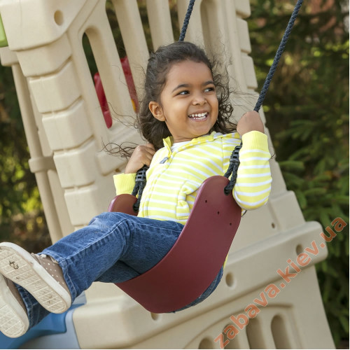 Нижній рівень має реалістичний кам'яний фасад, половинчасті двері та отвори для лазіння. На верхній рівень ведуть міцні пластикові та мотузкові сходи. Вниз можна з'їхати 2-метровою гіркою!
