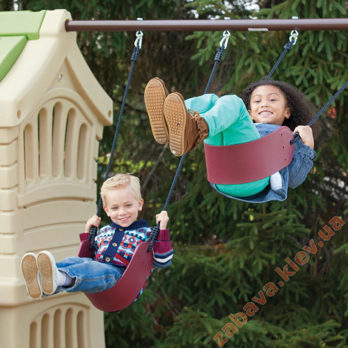 Розвиває координацію рухів, почуття балансу, рівноваги та уяви. Гойдалка оснащена зручними сидіннями для комфорту (дизайн сидінь може змінюватись). Гойдалка-балансир для 2-х дітей забавної форми. Існує баскетбольний щит для гри. Міцна конструкція прослужить довгі роки та принесе багато радості дітям. Дотримуйтесь інструкцій зі збирання.
