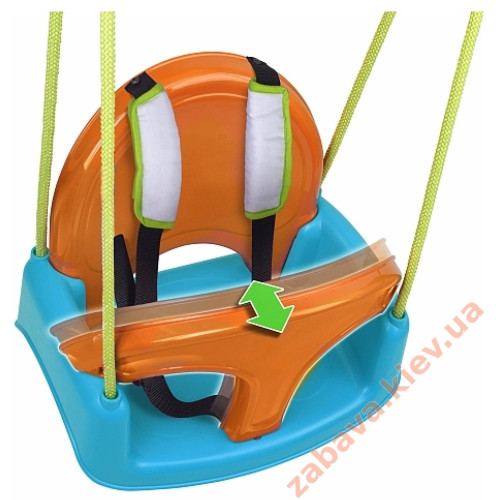 Виконані у яскравих кольорах з бампером-обмежувачем, який можна регулювати під зростання дитини у двох положеннях або просто зняти. Така іграшка стане найулюбленішим місцем для ігор Вашого чада. Завдяки порівняно невеликим габаритам його можна встановити як на вулиці, так і в приміщенні. Козирок і спинку біля гойдалки також можна зняти. Виріб стійкий до ультрафіолетового випромінювання і пофарбований спеціальним складом від іржі.