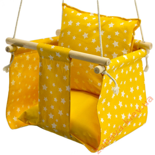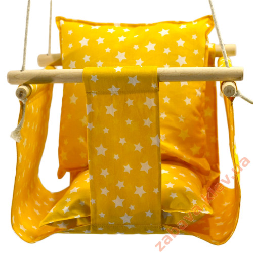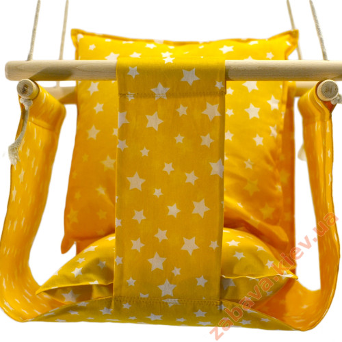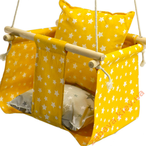 Дитяча гойдалка із захисним бортиком для дому жовта Зірочки купити за ціною 960 грн.