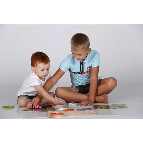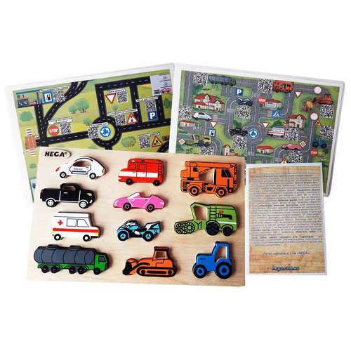 Кольори машинок наближені до натуральних, це дає можливість знаходити такі машини в реальному житті, запам'ятовувати їх правильне назва і почути цікаву історію від дорослих про призначення кожної машинки. Тут різні моделі, як з особистого автопарку жителів міста, так і спецслужби і навіть сільськогосподарська техніка. Розповідь про те, як виростити і зібрати хліб і як доставити його в магазин надовго залишиться в пам'яті дитини. Швидка допомога, пожежна машина, поліція – як вирішити хто важливіший для міста? Коробка-сортер навчить не тільки знаходити своє місце для кожної машинки, але й правильно зберігати набір і з задоволення збирати. Такий набір прекрасно підходить для подорожей, для далекої дороги – він компактний і практичний. Окрема машинка поміститися в кишеню і буде кращим другом в садочку або на дитячому майданчику.
