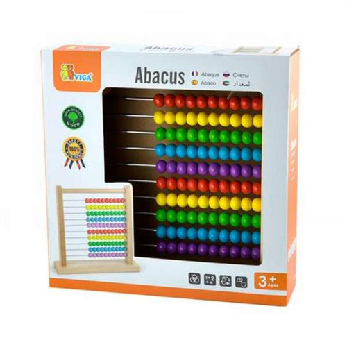 Барвиста рахівниця виконана з високоякісної деревини, містять 10 рядів по 10 кісточок. Підставка знизу прогумована, металеві стрижні міцні й рівні.