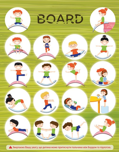 Балансувальна дошка для занять з дітьми може бути представлена її різновидами (дошка-лабіринт, дошка Рокер, балансувальне бревно, роликова дошка балансир) - це спортивно ігровий інвентар, з допомогою якого розвивають рівновагу та координацію рухів, вестибулярний аппапат, зміцнюють м'язи тіла і стимулюють мозкову діяльність.