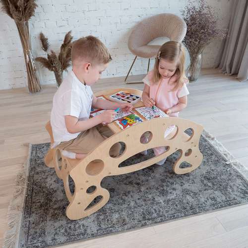 Столик для творчості та балансир – це чудовий спосіб оптимізації простору дитячої кімнати та створення безпечного середовища для гри і навчання дошкільнят.
