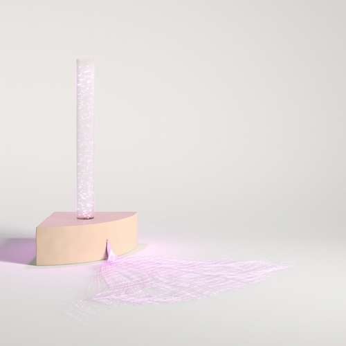 Бульбашкова кутова колона з пучком фіброоптики являє собою колону-колбу, наповнену водою, на підставці у вигляді кутового пуфа. Під час роботи виріб підсвічується різними відтінками кольору. Може використовуватися в додатку з пластиковими рибками або водоростями. Також у комплект колони входить пучок фіброоптики, вбудований у пуф.