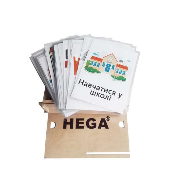Набір складається з карток, на яких є зображення з основних тем, за допомогою яких дитина, яка має труднощі в комунікації, може виражати свої бажання та потреби.