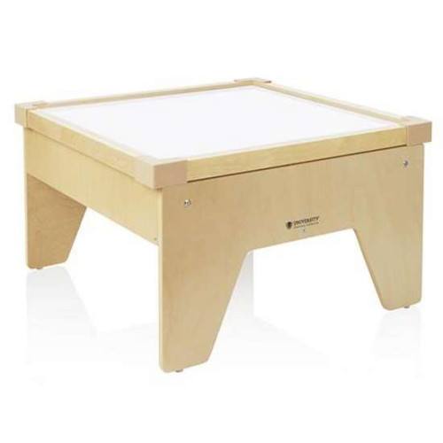 Дитячий стіл з різнокольоровою підсвіткою University підходить для творчості, анімації та дитячих розвиваючих занять. Столик висвітлюється світлодіодами, які надійно заховані в дерев'яний короб. Кути столу захищені пластиковими накладками. Міцна розпірка під столом збільшує його надійність. Інтенсивність і колір освітлення регулюється пультом управління. Використовуються світлодіоди основних відтінків: білий, червоний, зелений, синій, жовтий, помаранчевий, фіолетовий.