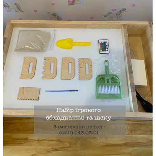 Стіл пісочниця з підсвічуванням для малювання піском, ясен + комплект для занять