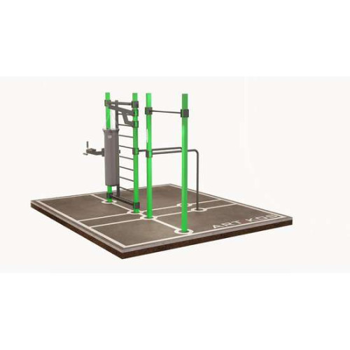 Конструкція спортивного комплексу виготовлена з міцного металу, розрахованого на інтенсивні навантаження та тривалий термін експлуатації. Вуличний спортивний комплекс, залежно від моделі та комплектації, виконує функції універсального тренажера та дозволяє ефективно тренувати м’язи преса, рук, грудей і спини.