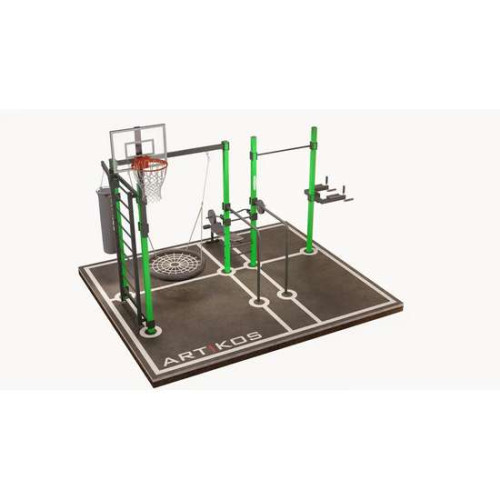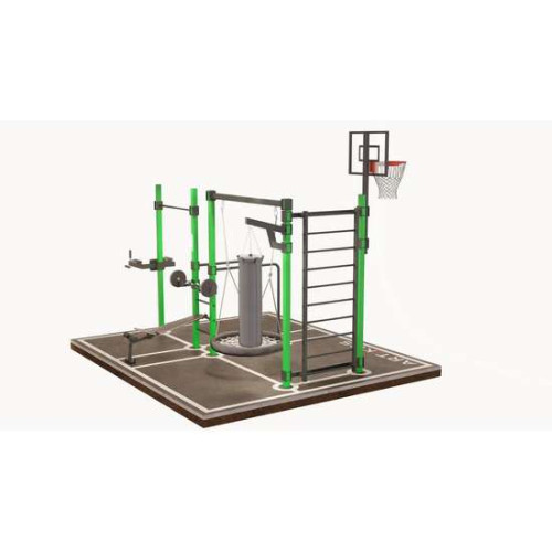 Конструкція спортивного комплексу виготовлена з міцного металу, розрахованого на інтенсивні навантаження та тривалий термін експлуатації. Вуличний спортивний комплекс, залежно від моделі та комплектації, виконує функції універсального тренажера та дозволяє ефективно тренувати м’язи преса, рук, грудей і спини.