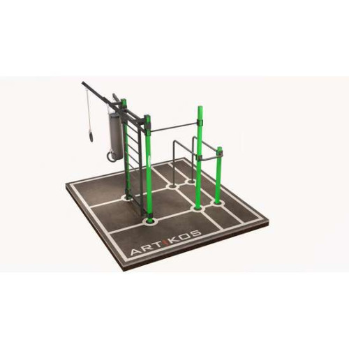 Конструкція спортивного комплексу виготовлена з міцного металу, розрахованого на інтенсивні навантаження та тривалий термін експлуатації. Вуличний спортивний комплекс, залежно від моделі та комплектації, виконує функції універсального тренажера та дозволяє ефективно тренувати м’язи преса, рук, грудей і спини.