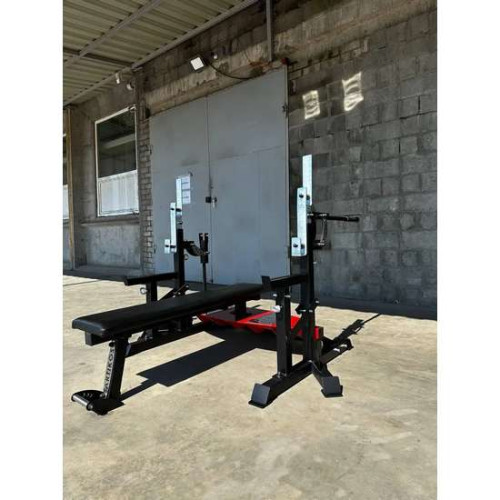 Легко трансформується з жимової лави у стійки для присідання.