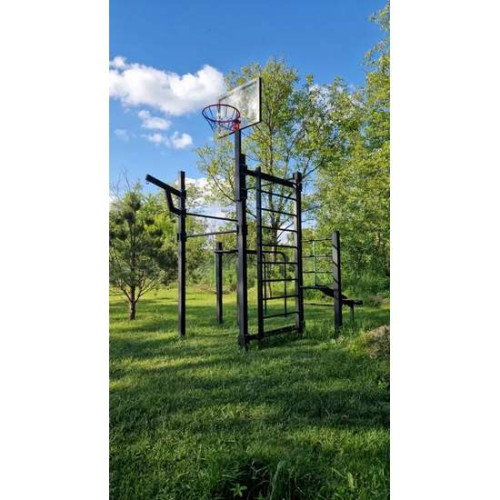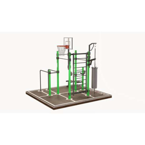 Конструкція спортивного комплексу виготовлена з міцного металу, розрахованого на інтенсивні навантаження та тривалий термін експлуатації. Вуличний спортивний комплекс, залежно від моделі та комплектації, виконує функції універсального тренажера та дозволяє ефективно тренувати м’язи преса, рук, грудей і спини.