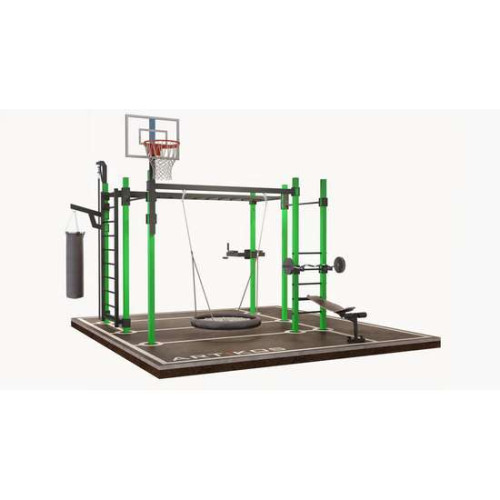 Конструкція спортивного комплексу виготовлена з міцного металу, розрахованого на інтенсивні навантаження та тривалий термін експлуатації. Вуличний спортивний комплекс, залежно від моделі та комплектації, виконує функції універсального тренажера та дозволяє ефективно тренувати м’язи преса, рук, грудей і спини.