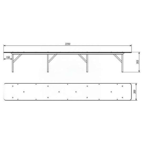 Лавка 2,25 м BRI-106.4 підходить для облаштування спортивного та шкільного залу, роздягальні, а також для бомбосховищ (укриття).Розміри: