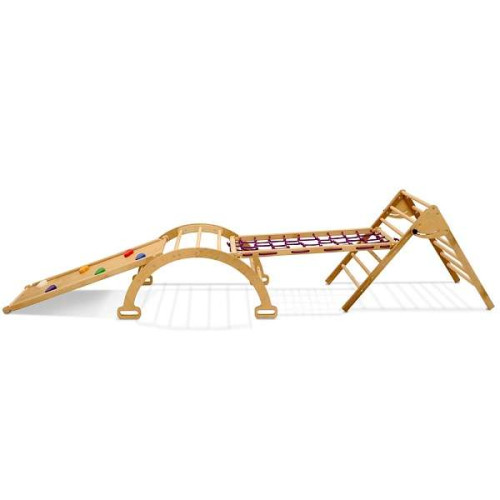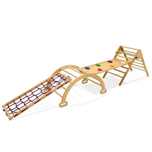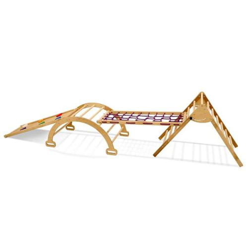 Дитячий спортивний комплекс Альпініст-4 – компактний, універсальний спортивно-розвиваючий куточок. Підходить для дітей, які тільки почали повзати. Гра та заняття на комплексі сприяють розвитку моторних навичок малюка, спритності, зміцнює м'язовий корсет.