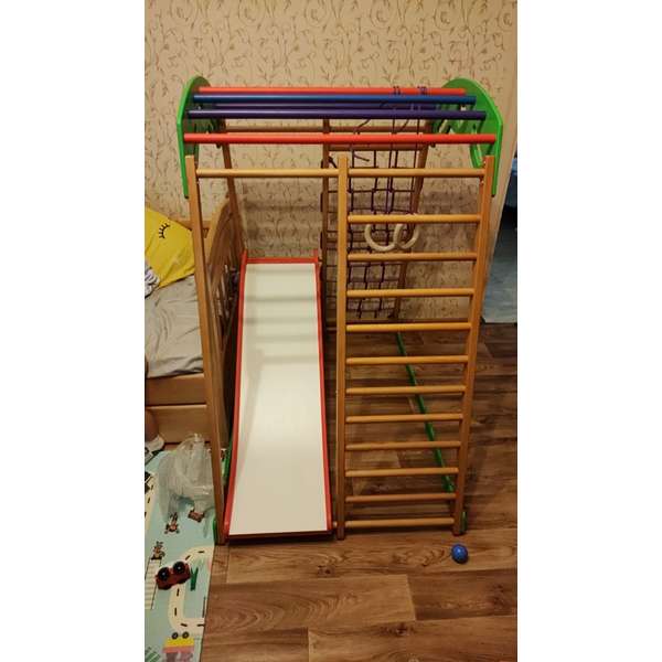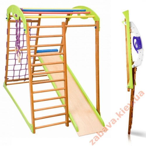 Це унікальний багатофункціональний куточок раннього розвитку з безліччю дитячих тренажерів, який виготовлений з екологічно чистих матеріалів та враховує всі потреби дитячого організму у фізичному навантаженні