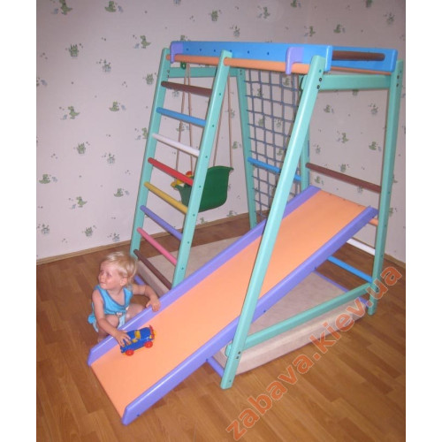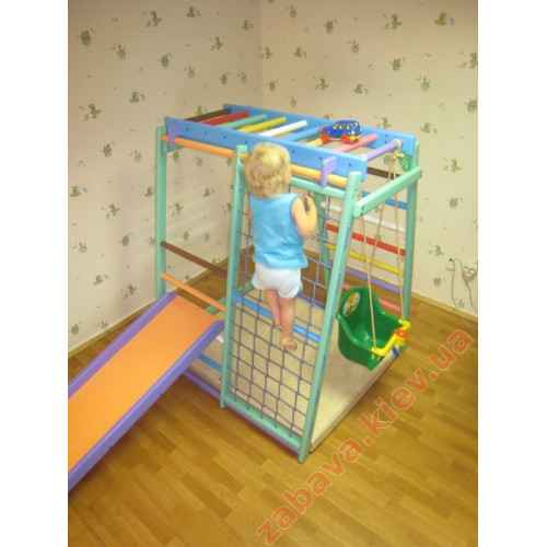 120*118см! Солідна перевага Маля плюс - він має розбірну конструкцію та виконаний з натурального дерева. На сьогоднішній день дитячий куточок «Малюк» є найкращою пропозицією для дітей віком від одного до восьми років. Фахівці рекомендують купувати дитячий спортивний комплекс у комплектації з матами та гіркою.