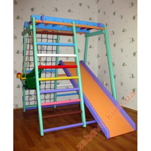 Для дитячого комплексу рекомендується використовувати мати завтовшки не менше 10 см. Вашій дитині буде дуже цікаво грати на цьому спорткомплексі. Адже там є і рукохід, і гладіаторська сітка, чудова гірка та гойдалка, турнік та сходи. Комплекс безпечний для малюків за рахунок того, що має невелику висоту.