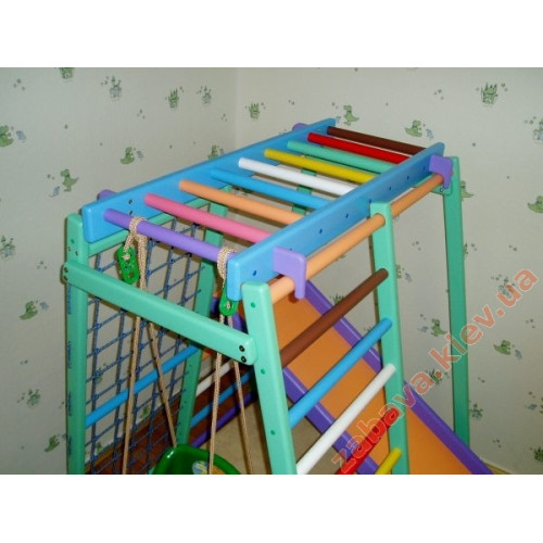 Цей спортивно-ігровий комплекс можна чудово використовувати для занять гімнастикою, або просто для дитячих ігор, як ігровий майданчик. Дитячі спортивні куточки здатні захопити малюків грою на тривалий час.