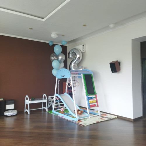Вага комплексу складає 22 кг, а сама конструкція не кріпиться до стіни чи підлоги, тому її можна переміщати по квартирі за потребою.