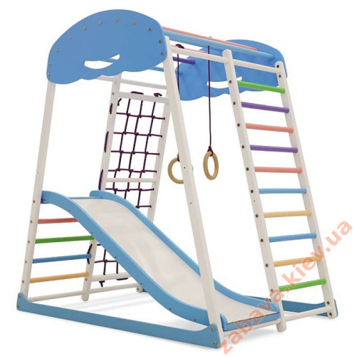 Куточок SportWood Sky Plus 1 для дітей молодшого віку чудово впишеться в інтер'єр будь-якої квартири. Комплекс має невеликі розміри, виготовлений із міцного бука, що витримує до 60 кг.