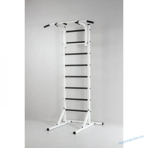 Міцна Універсальна підлогова шведська стінка з турником, брусами та лавою білого кольору купити за ціною 10 080 грн.