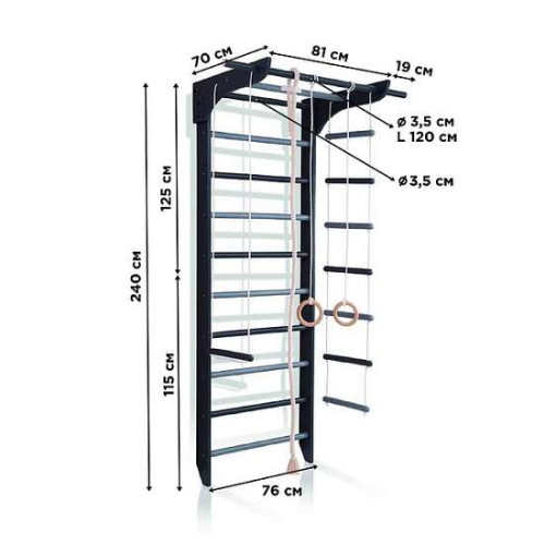 Шведська стінка чорно-біла дерев'яна 7-Lux 1-240 стандартної комплектації