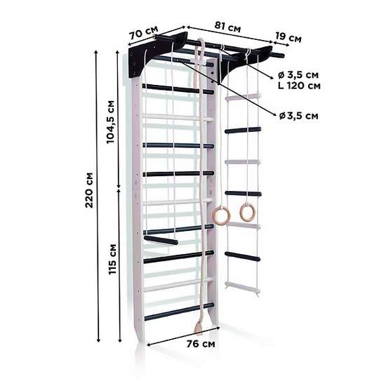Шведська стінка дерев'яна 4-Lux 1-220 біло-чорна з навісним обладнанням