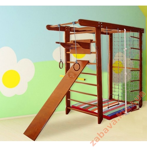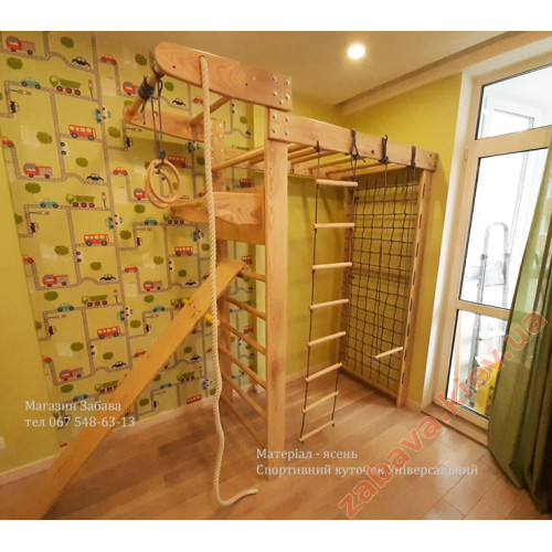 Такий домашній спорткомплекс займає площу 1,5 – 3 кв.м і може запросто перетворитися на будиночок чи халабуду – достатньо з одного боку на нього повісити покривало. Коли в гості до вашої дитини прийдуть друзі, спортивний комплекс допоможе використати енергію ваших дітей на всі 100% – їх усіх можна зайняти такою здоровенною іграшкою.