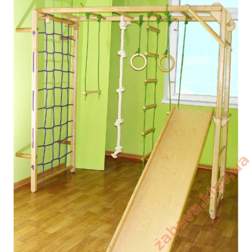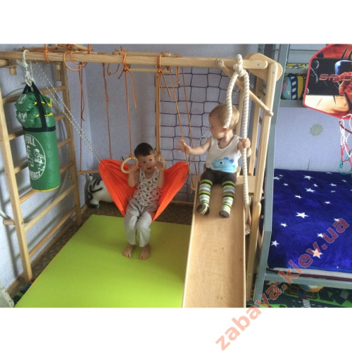 Спортивний куточок Ліана з турніком – ідеальний варіант для невеликого приміщення. Домашній турнік з рукоходом найкращий бюджетний варіант спортивного турніку. Складаний, розкладається за 1 хвилину. Базова комплектація - сітка, рукохід із мотузковим набором, гірка, гамак