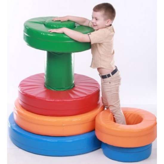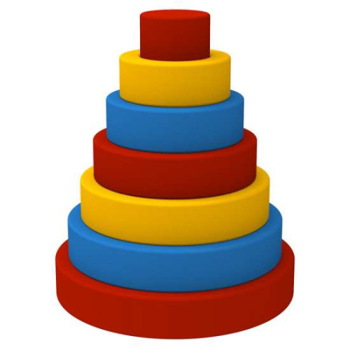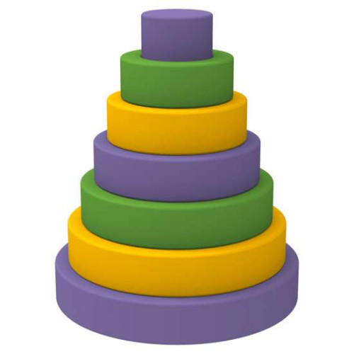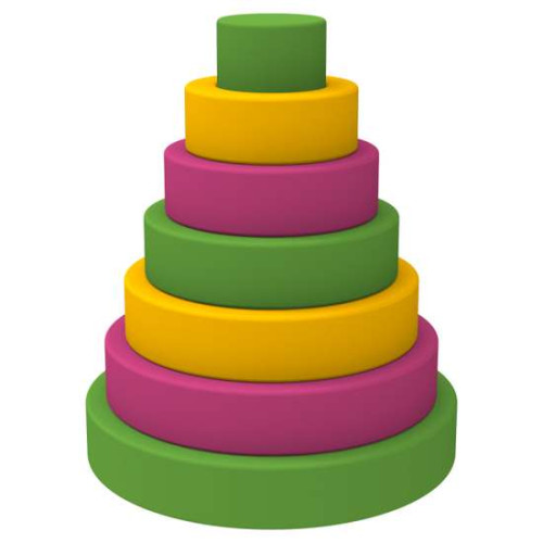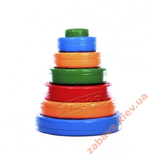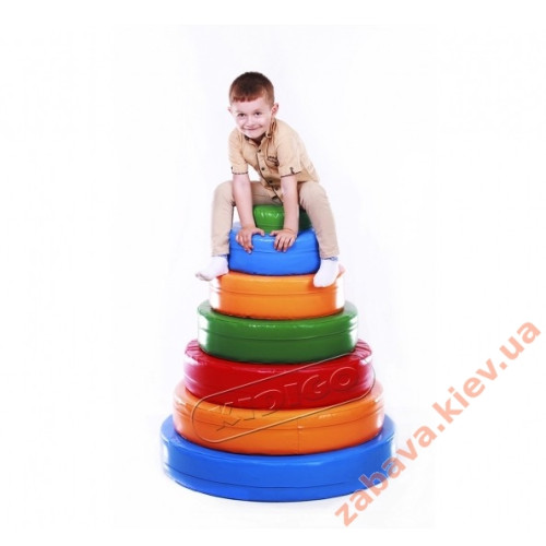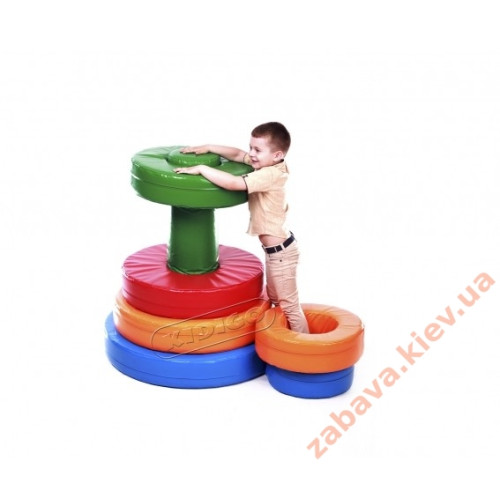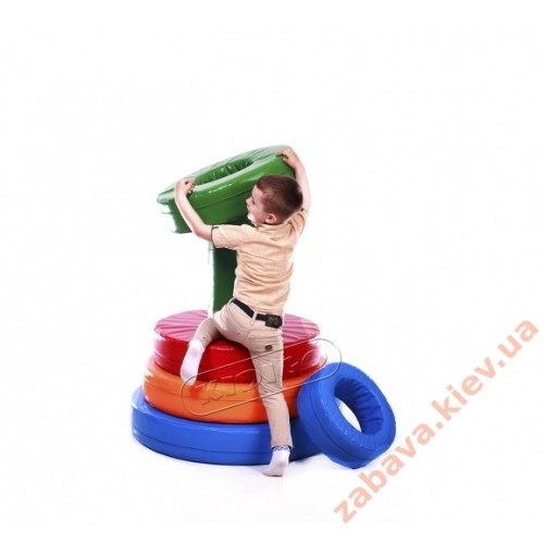 Модульний набір Піраміда складається з 6 фігурних кілець та 1 циліндра. Усі деталі різнокольорові. Вчить дітей послідовності і логічному мисленню.- Розмір - 1,05х0,9х0,9 м