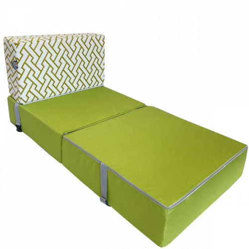 Є м'яким зручним кріслом яскравих відтінків (за бажанням замовника), яке розкладається і перетворюється на комфортне місце для релаксу та відпочинку. Транспортабельна, легка. Не потребує додаткових зусиль у трансформації, яка здійснюється за допомогою зав'язувальної тасьми.