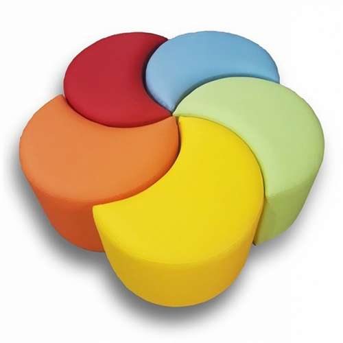 Комплект дитячих пуфів Веселка складається із 5 різнокольорових пуфів. Модульний комплект Веселка забезпечить комфорт, а також стане функціональною окрасою будь-якого приміщення. Невелика вага пуфів дозволяє дітям самостійно їх пересувати. Відсутність гострих, твердих кутів забезпечує безпеку малюків під час гри.