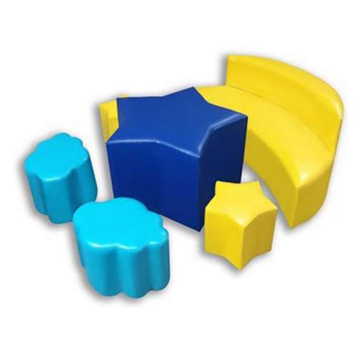 Комплект дитячих меблів Місяць складається з 6 модулів: дивана, столу та 4 пуфів.. Модульний комплект Місяць забезпечить комфорт, а також стане функціональною окрасою будь-якого приміщення. Відсутність гострих, твердих кутів забезпечує безпеку малюків під час гри.