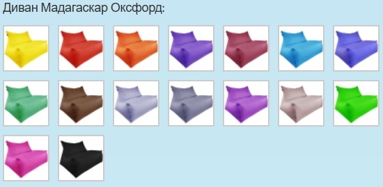 Закуповується для домашнього та громадського користування. Безкаркасний диван Мадагаскар легко інтегрується у будь-який інтер'єр і стає його повноцінною частиною. Такі бінбеги закуповують для ресторанів, кафе, кінотеатрів, боулінг клубів, спортивних секцій, дитячих ігрових центрів. Вони незамінні під час проведення лекцій, конференцій, брифінгу, інтерв'ю, презентацій. Готелі та санаторії використовують вироби для комфортного розміщення туристів.